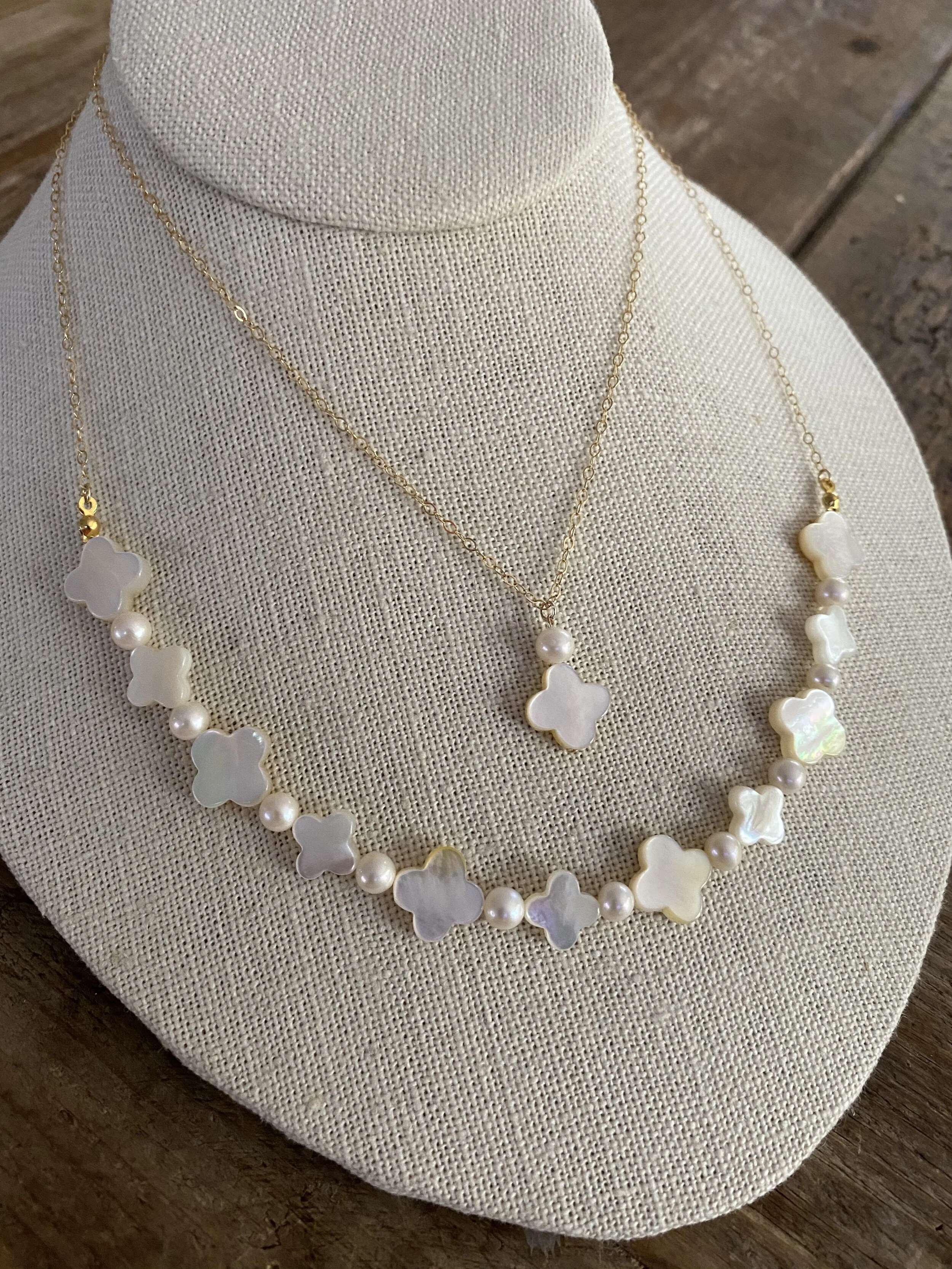 Genuine Freshwater Pearl and Mother of Pearl Quatrefoil Pendant Necklace